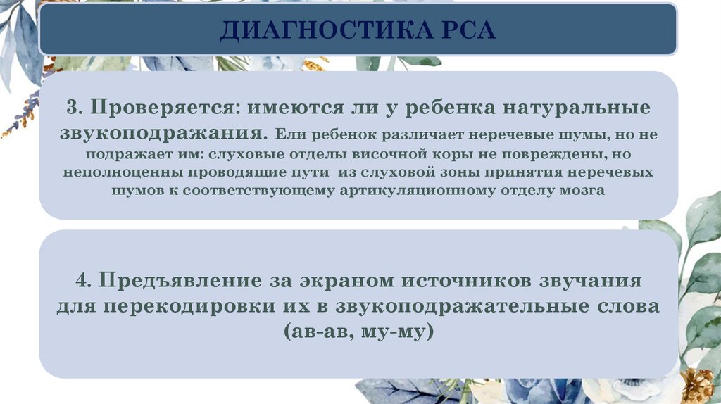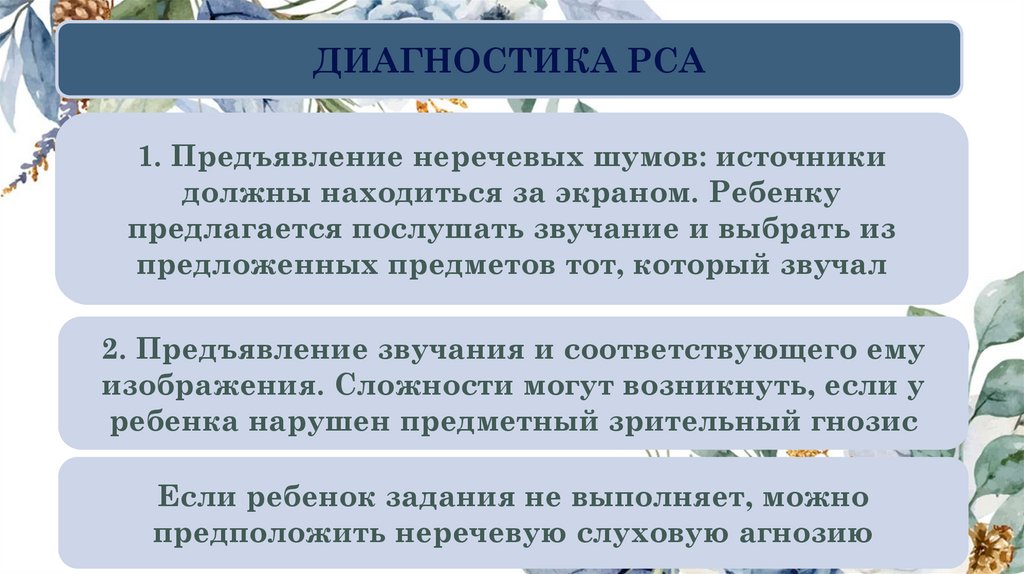 ДИАГНОСТИКА РСА1. Предъявление неречевых шумов: источники