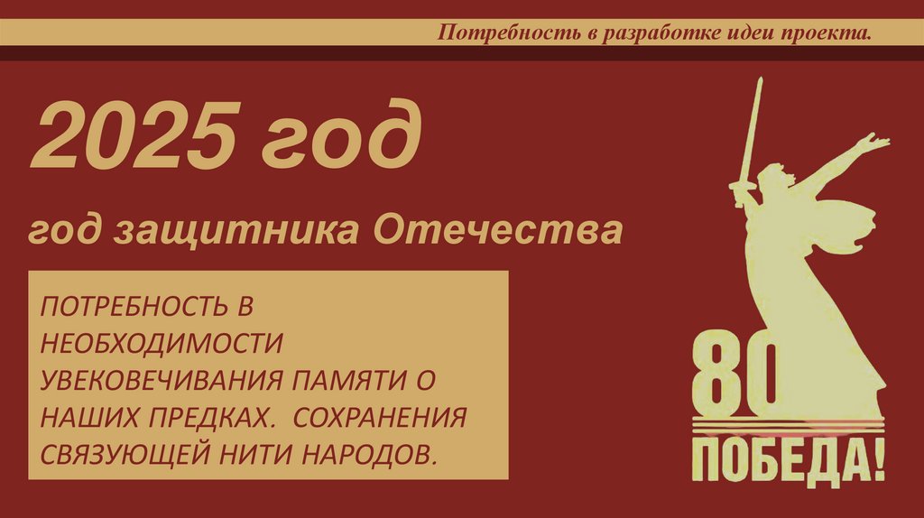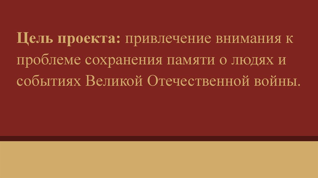 Цель проекта: привлечение внимания кпроблеме сохранения памяти о людях и