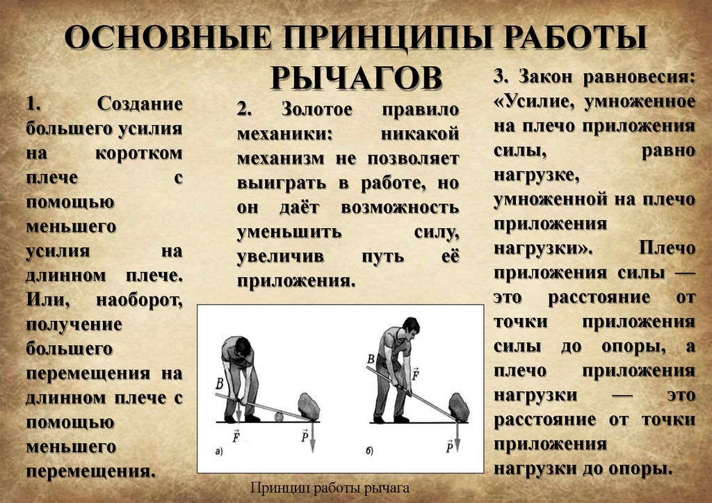 ОСНОВНЫЕ ПРИНЦИПЫ РАБОТЫРЫЧАГОВ 3. Закон равновесия: