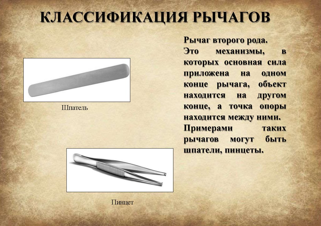 КЛАССИФИКАЦИЯ РЫЧАГОВРычаг второго рода.