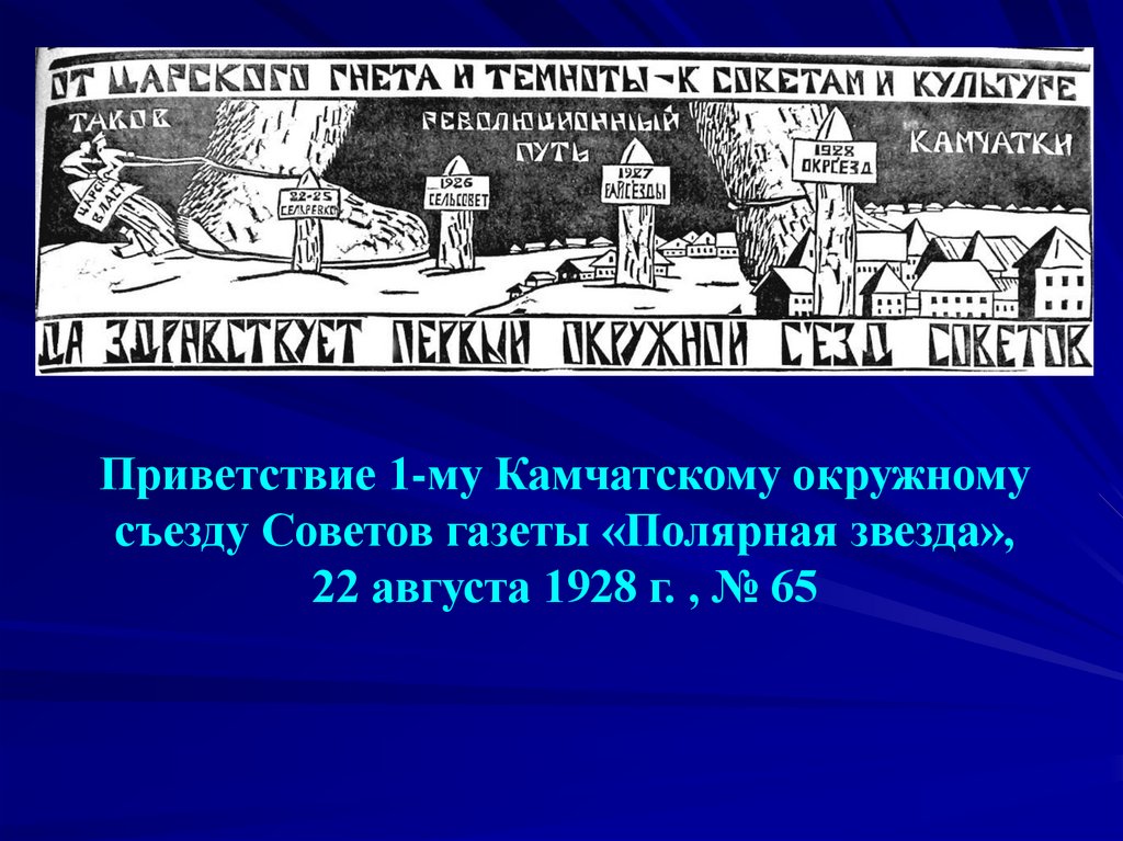 Приветствие 1-му Камчатскому окружномусъезду Советов газеты «Полярная звезда»,