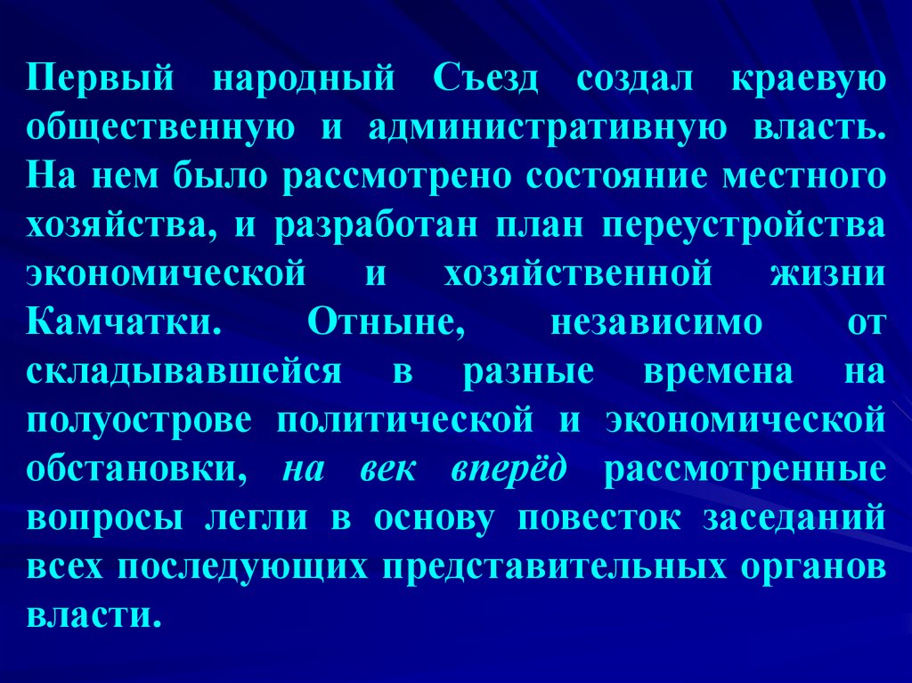 Первый народный Съезд создал краевуюобщественную и административную власть.