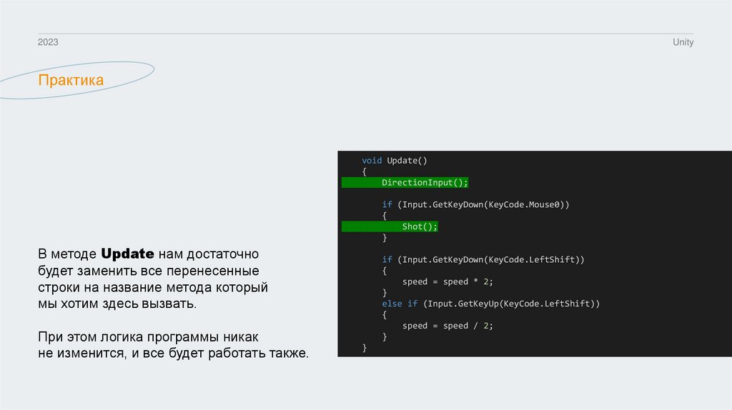 пользовательский ввод, используем Update.
