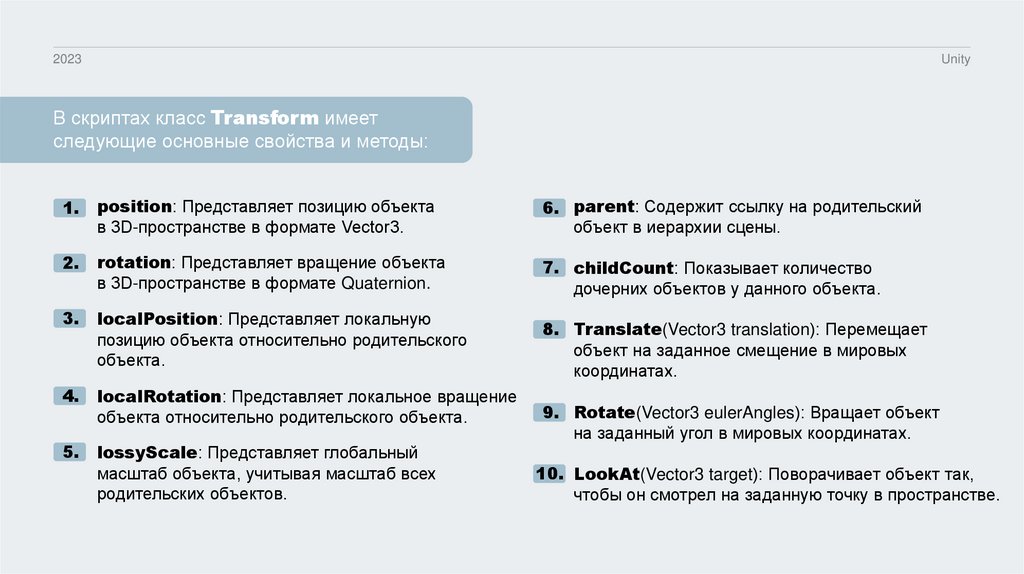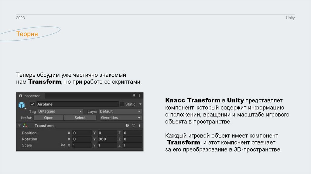 Теория GameObject, Transform, Vector3