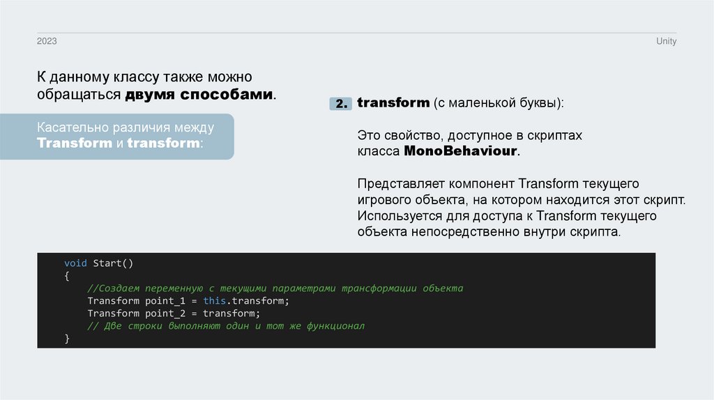 C# Основные классы Unity