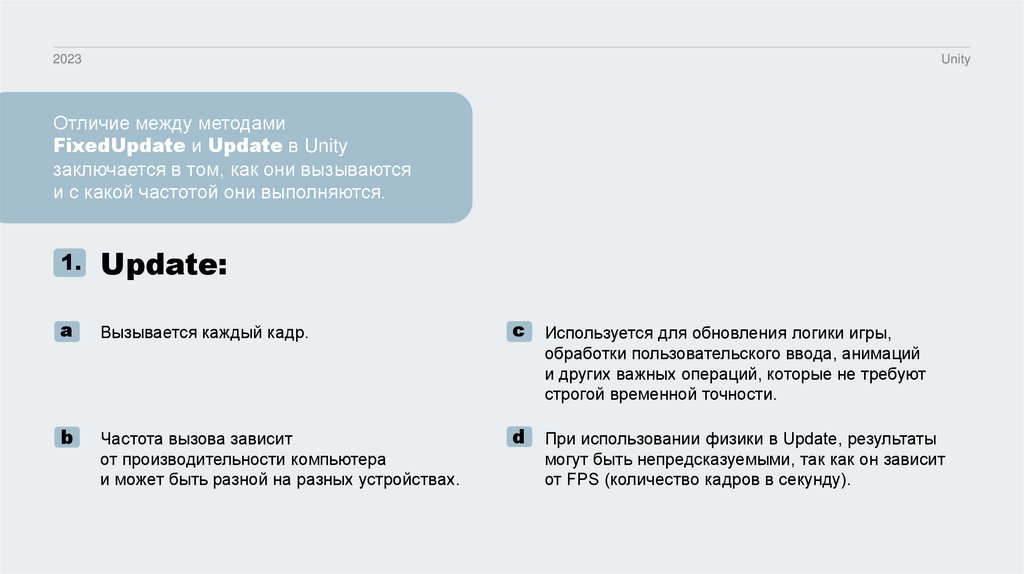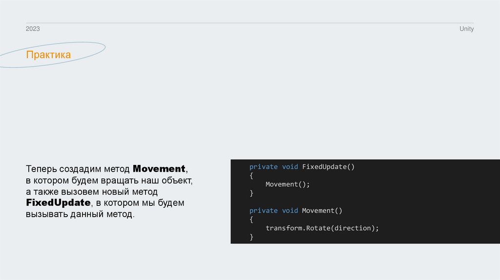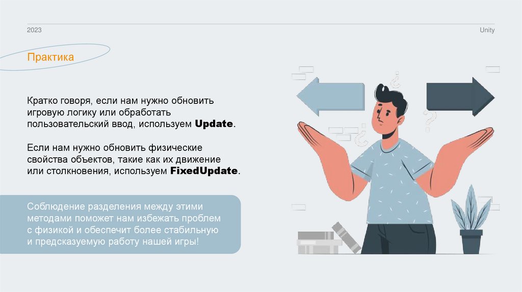 или столкновения, используем FixedUpdate.