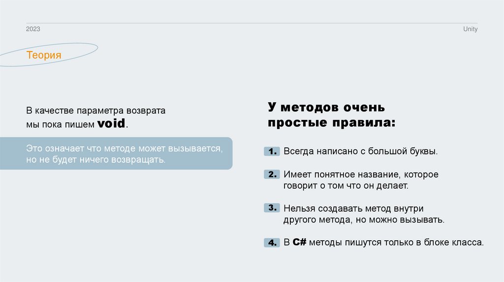 4. В C# методы пишутся только в блоке класса.