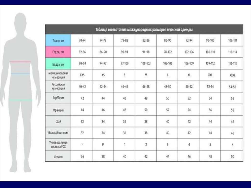 Соответствие букв и российскогоразмера в мужской одежде: