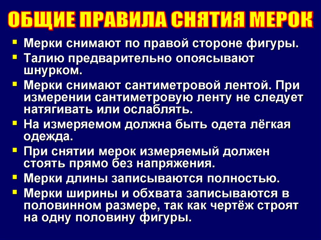 Общие правила снятия мерок