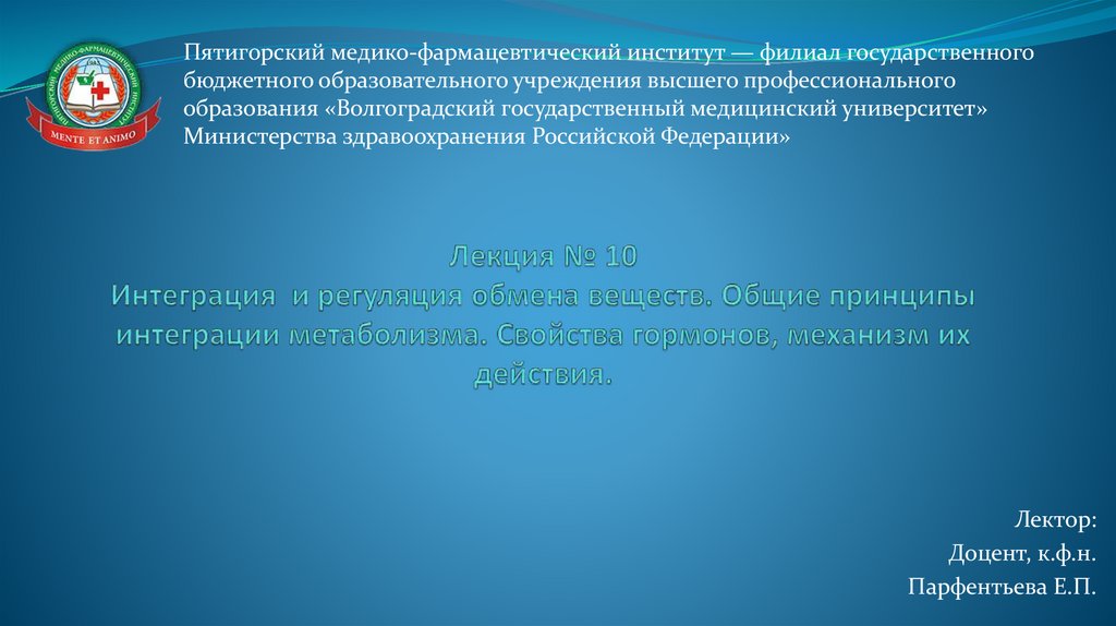 Пятигорский медико-фармацевтический институт — филиал государственногобюджетного образовательного учреждения высшего профессионального
