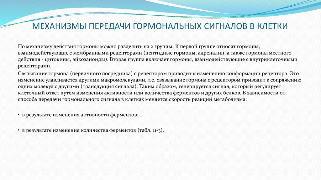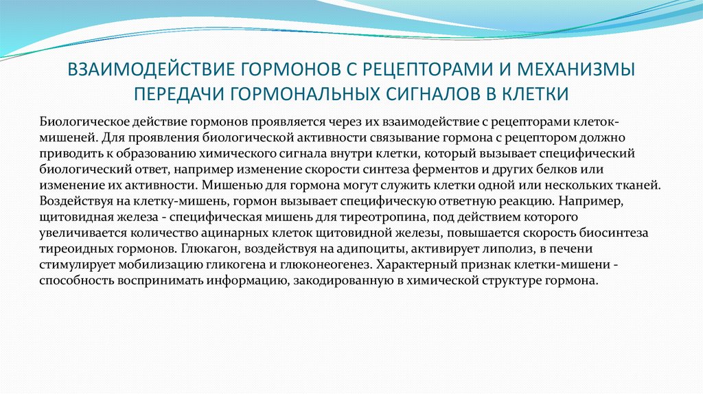 и определяется как химическим строением гормона, так и типом клетки, на которую направлено действие