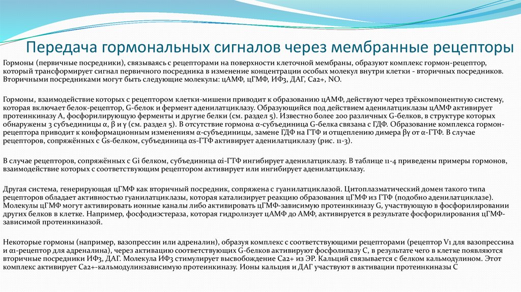 с мембранными рецепторами соседних клеток; В-аутокринная гормоны секретируются во внеклеточное пространство и связываются