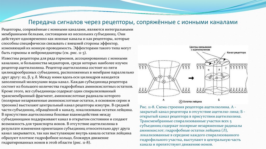 • Передача сигналов через рецепторы, сопряжённые с ионными каналами