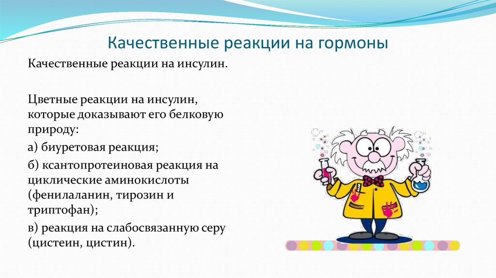 Качественные реакции на инсулин.Цветные реакции на инсулин,