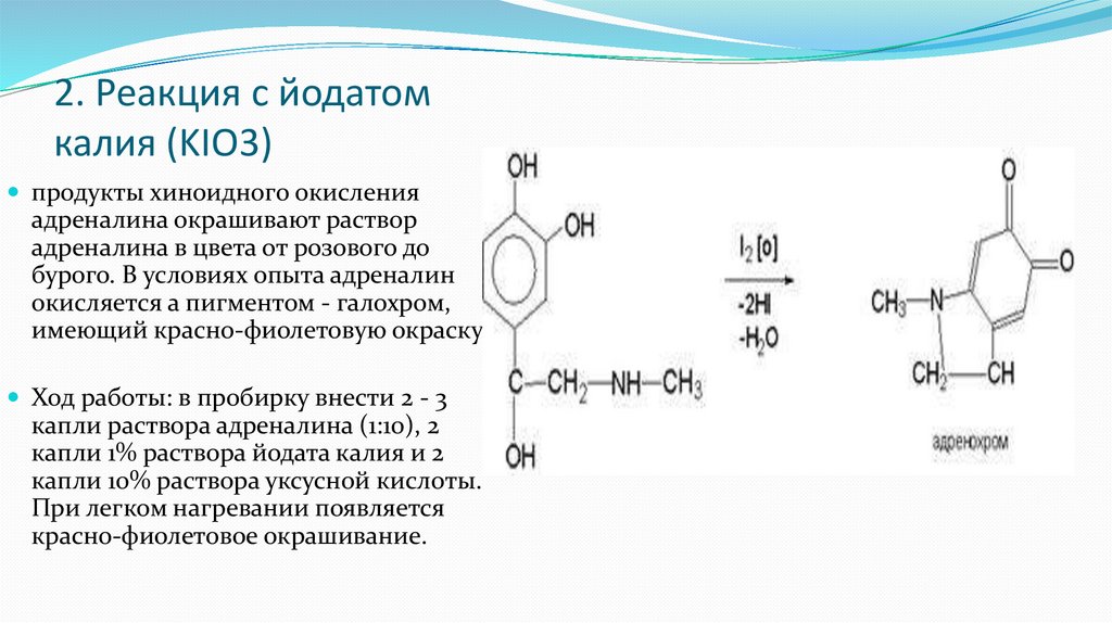 продукты хиноидного окисленияадреналина окрашивают раствор