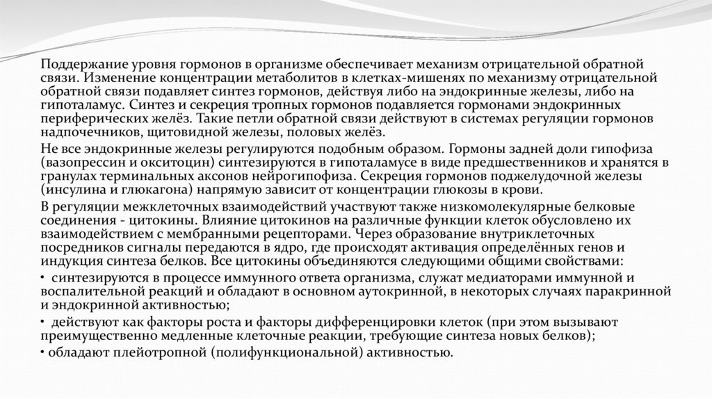 периферических желёз. Такие петли обратной связи действуют в системах регуляции гормонов