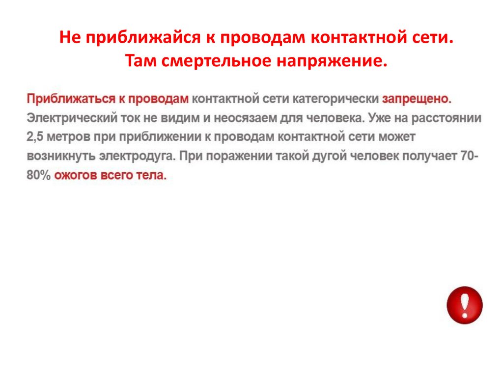 Не приближайся к проводам контактной сети.Там смертельное напряжение.