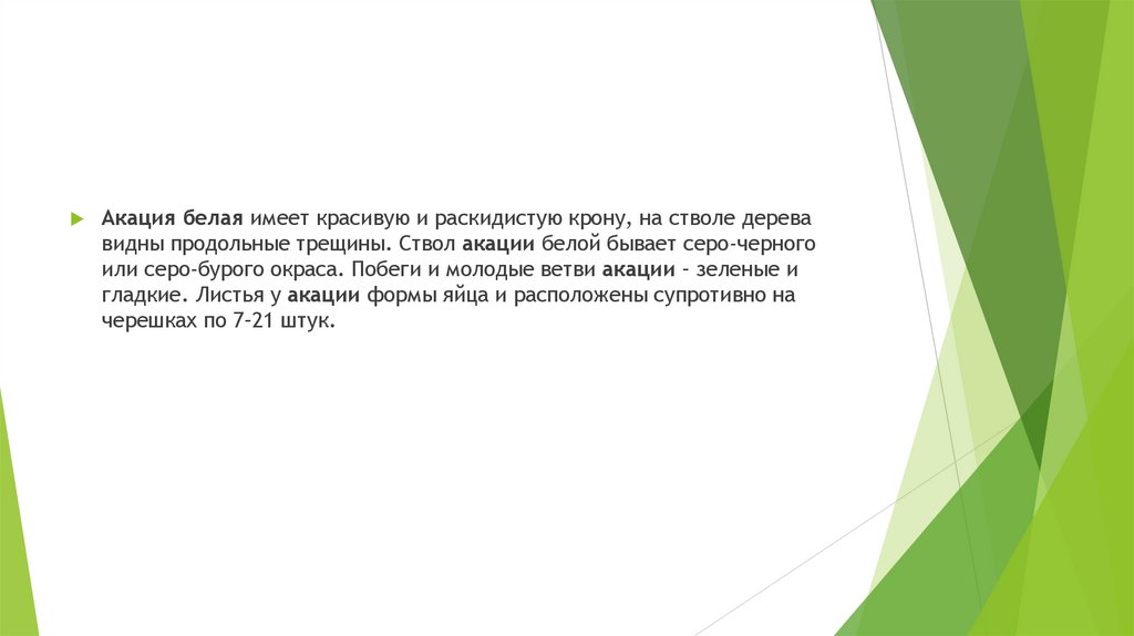 или серо-бурого окраса. Побеги и молодые ветви акации – зеленые и