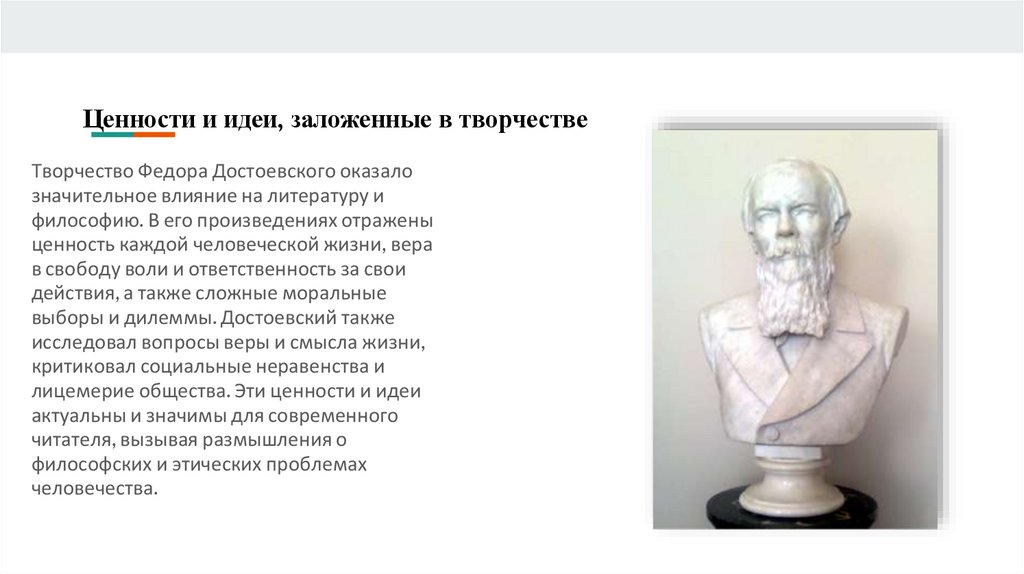 Ценности и идеи, заложенные в творчествеТворчество Федора Достоевского оказало