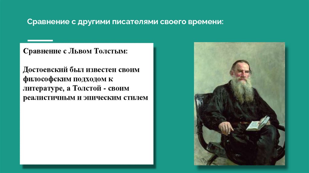 Сравнение с другими писателями своего времени:Сравнение с Львом Толстым: