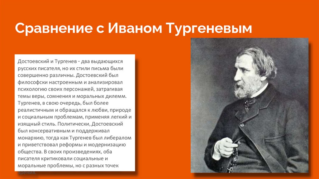 Сравнение с Иваном ТургеневымДостоевский и Тургенев - два выдающихся