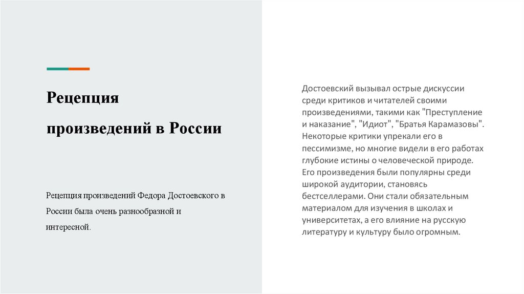 Влияние творчества Фёдора Достоевскогона развитие русской и мировой