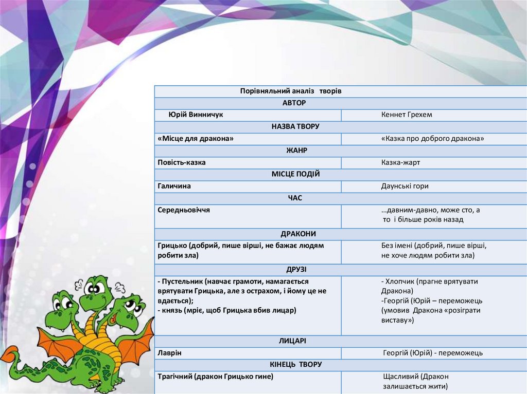 1. Юрій Винничук “Місце для дракона”. Парадокс: дракон Грицько – поет і християнин.