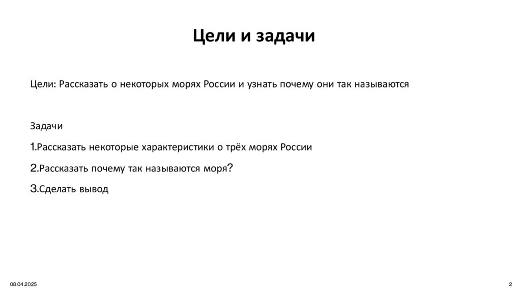 Цели и задачиЦели: Рассказать о некоторых морях России и узнать почему они так называются