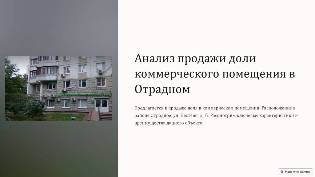 Анализ продажи доли коммерческого помещения в Отрадном