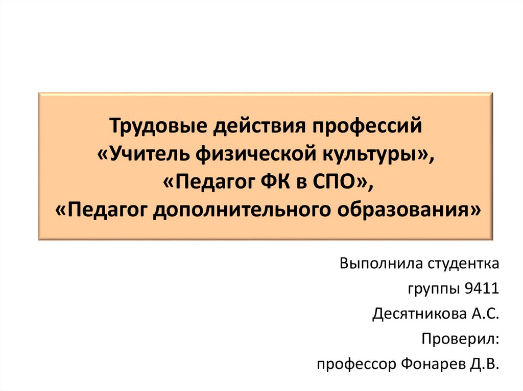 Трудовые действия профессий «Учитель физической культуры», «Педагог ФК в СПО», «Педагог дополнительного образования»