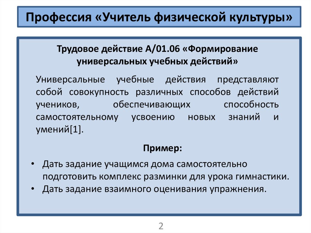 Профессия «Учитель физической культуры»Трудовое действие А/01.06 «Формирование