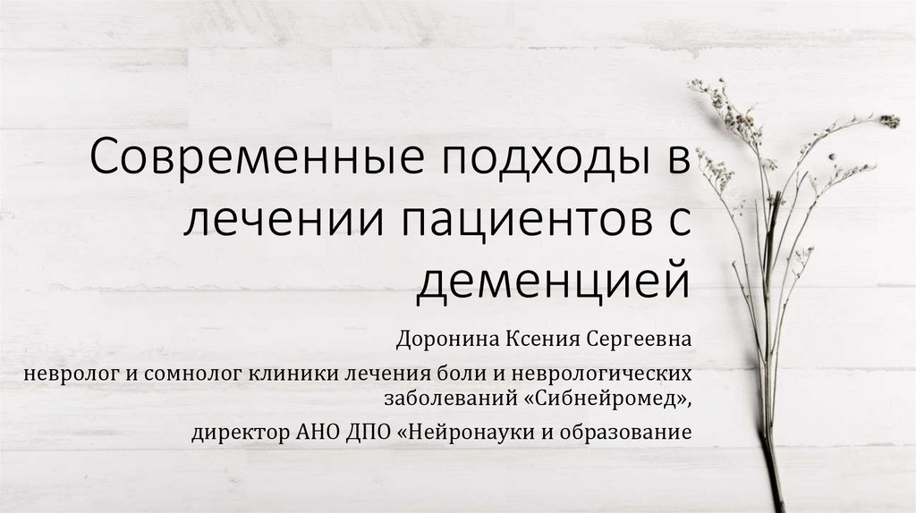 Современные подходы в лечении пациентов с деменцией