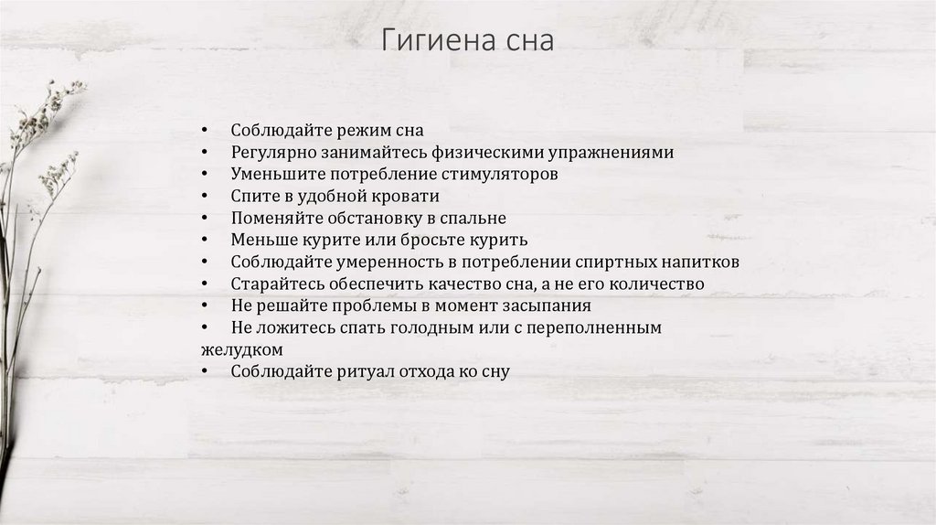 Гигиена сна• Соблюдайте режим сна