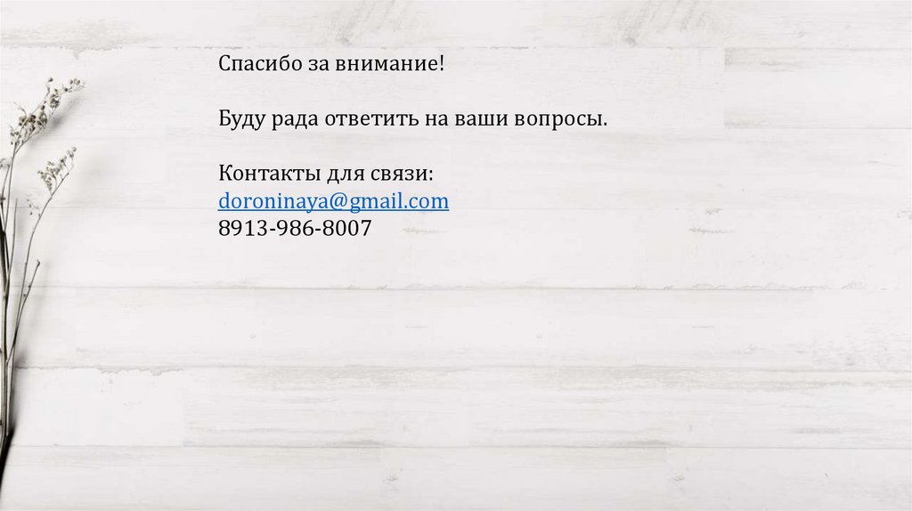 Спасибо за внимание!Буду рада ответить на ваши вопросы.