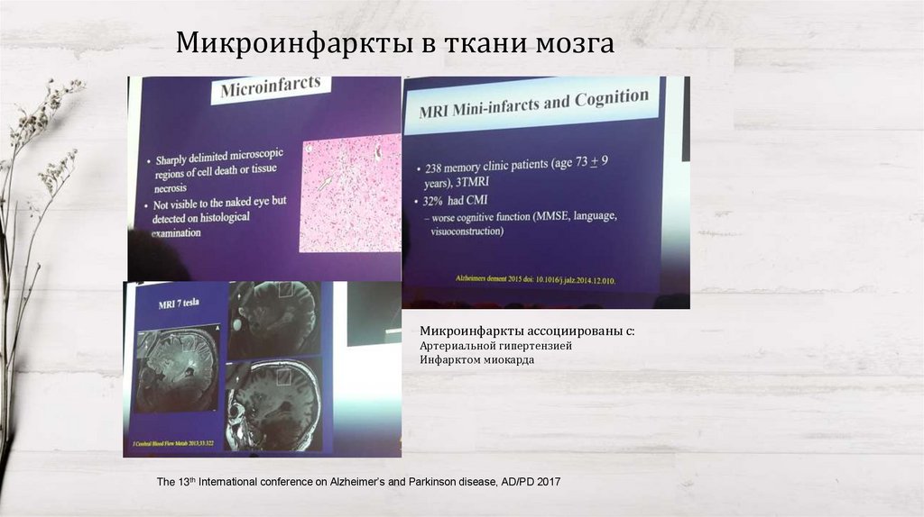 Микроинфаркты в ткани мозгаМикроинфаркты ассоциированы с: