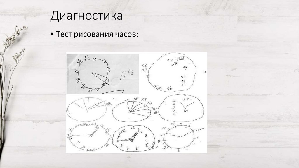 Диагностика• Тест рисования часов: