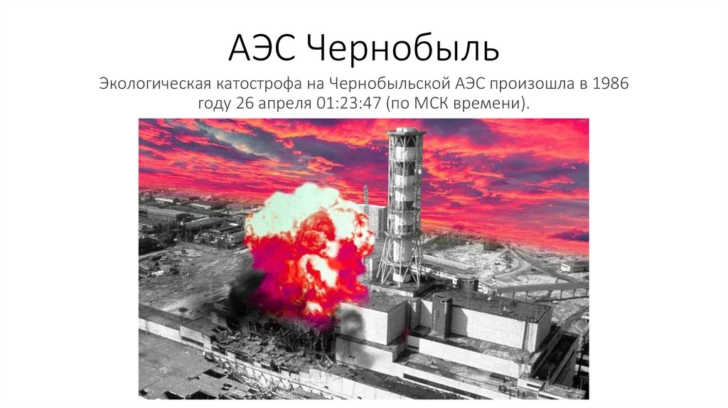 АЭС ЧернобыльЭкологическая катострофа на Чернобыльской АЭС произошла в 1986