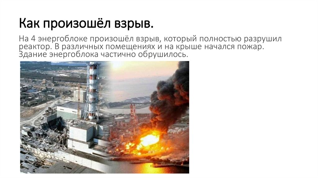 Как произошёл взрыв.На 4 энергоблоке произошёл взрыв, который полностью разрушил