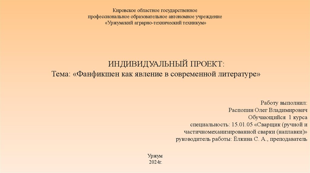 ИНДИВИДУАЛЬНЫЙ ПРОЕКТ: