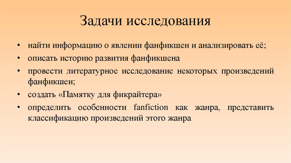 • найти информацию о явлении фанфикшен и анализировать её;• описать историю развития фанфикшена