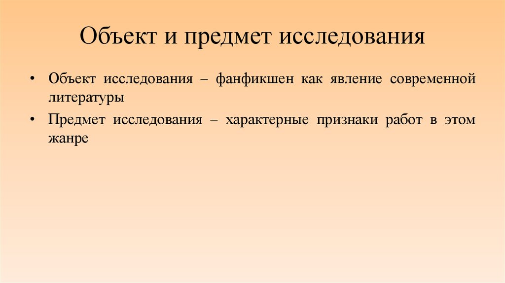 • Объект исследования – фанфикшен как явление современнойлитературы