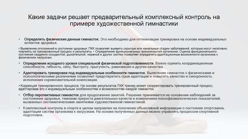 2. Какие задачи решает предварительный комплексный контроль на примере художественной гимнастики