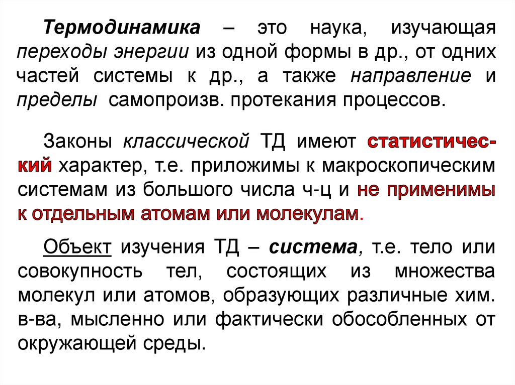 Термодинамика – это наука, изучающаяпереходы энергии из одной формы в др., от одних