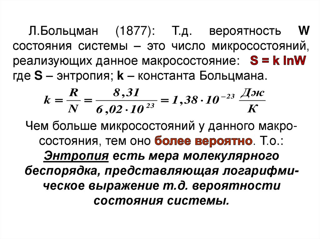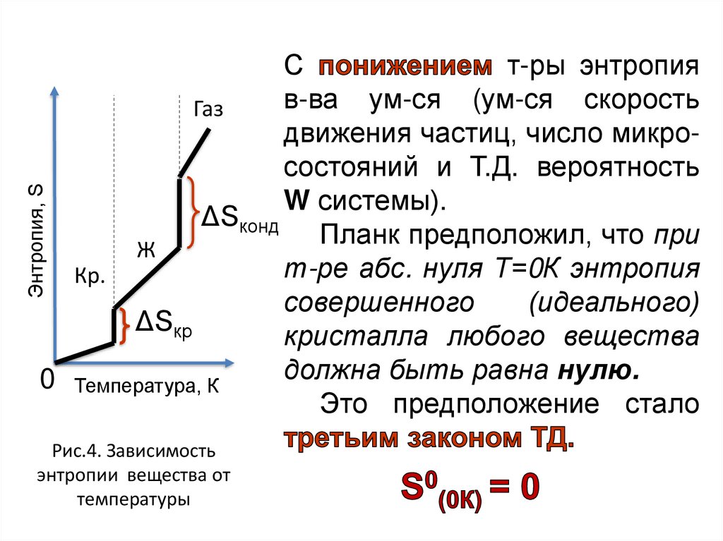 • энтропия S и её изменение S;