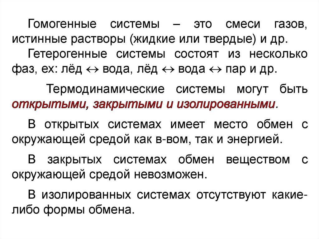 В изолированных системах отсутствуют какиелибо формы обмена.