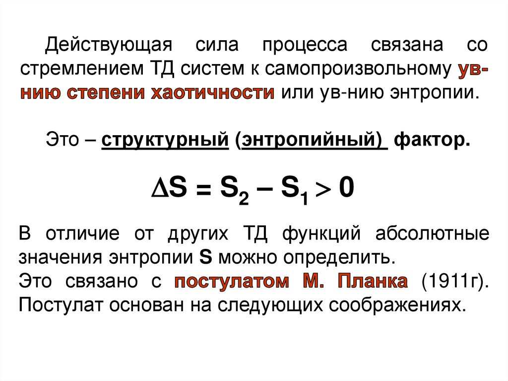 Энтропийный фактор является одной из двухдвижущих сил процессов и должен иметь размер
