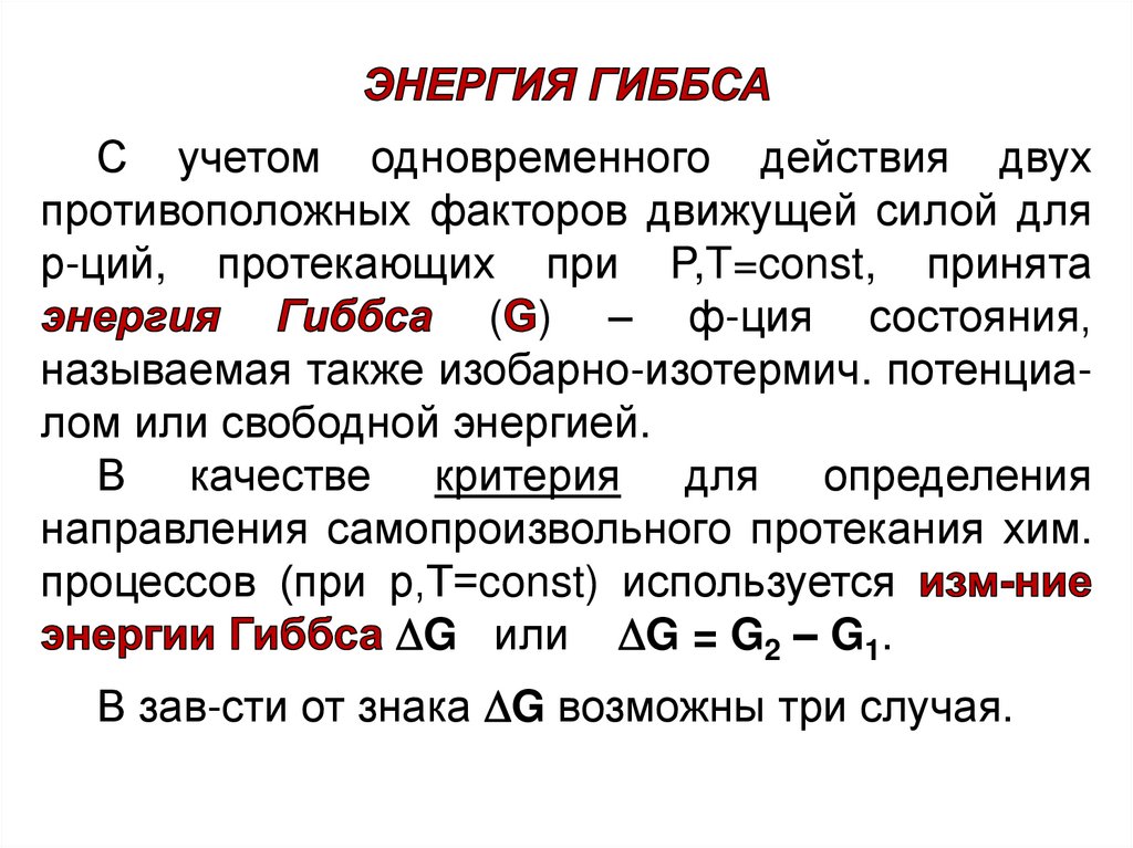 • энергия Гиббса G и её изменение G при