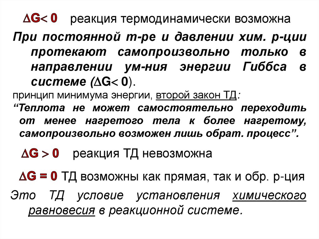 реакция термодинамически возможнаПри постоянной т-ре и давлении хим. р-ции