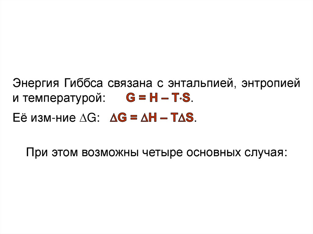 Энергия Гиббса связана с энтальпией, энтропиейи температурой: