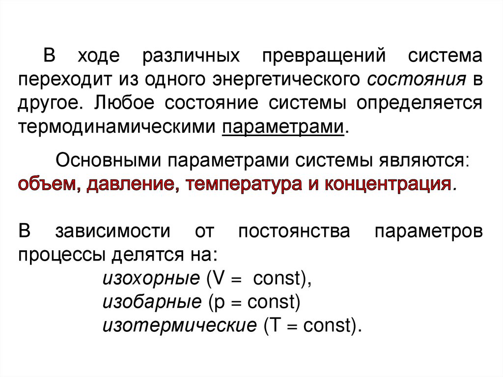 В ходе различных превращений системапереходит из одного энергетического состояния в